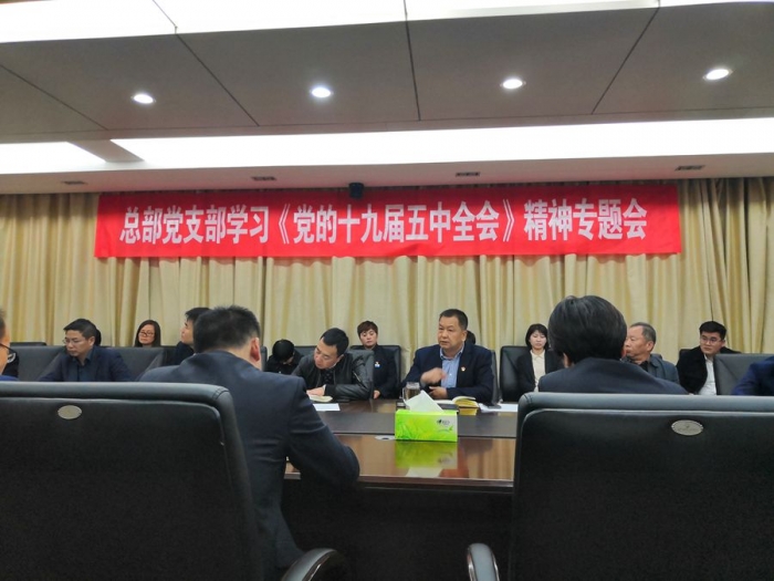 2020年11月10日晚,公司總部黨支部組織召開學(xué)習(xí)貫徹《黨的十九屆五中全會》精神專題會。公司董事長、黨委書記胥立、班子成員及各部門相關(guān)黨員干部共計30余人參會,會議由總部黨支部書記沈為民主持。
