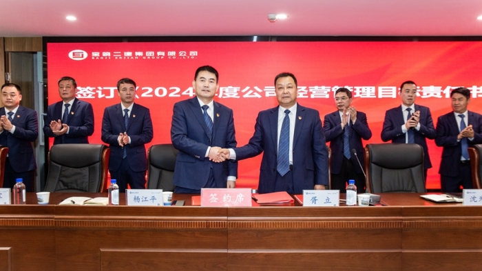 黨委書(shū)記、董事長(zhǎng)胥立與黨委副書(shū)記、總經(jīng)理?xiàng)罱胶炗啞?024年度經(jīng)營(yíng)管理目標(biāo)責(zé)任書(shū)》。