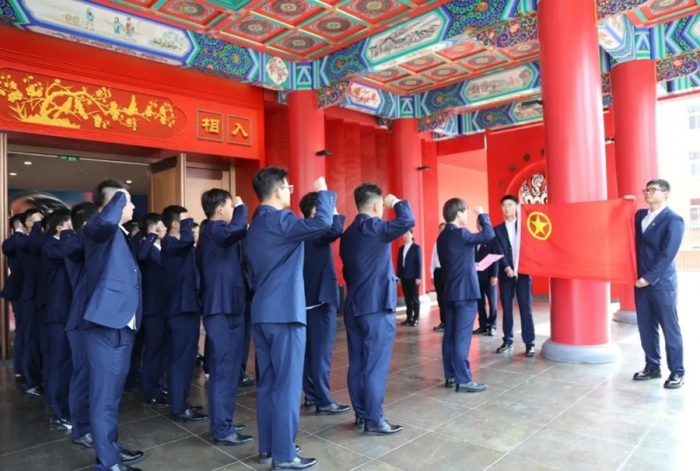 天水中南錦時住宅項目(安置區(qū)北區(qū))項目部團員青年達云飛帶領大家重溫入團誓詞。鏗鏘有力的誓詞回蕩在現(xiàn)場,激勵著每一位團員青年時刻銘記團員使命,不忘初心,砥礪前行。