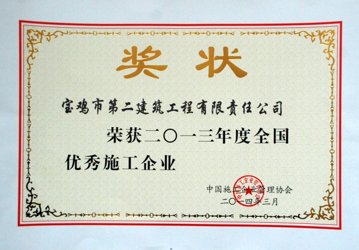 2013年全國工程建設(shè)質(zhì)量管理優(yōu)秀企業(yè)